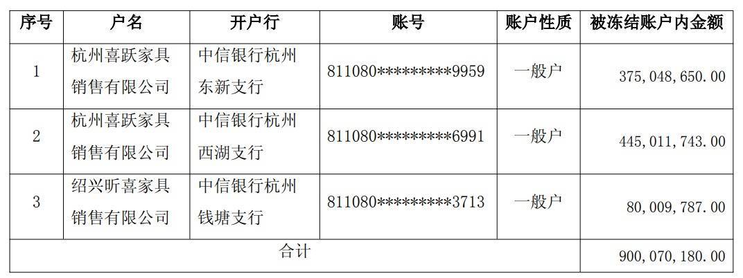 喜临门表示,上述银行账户冻结是公司为保护资金安全而主动进行的保护性冻结,不存在被第三方冻结的情形,该事项可能对控股子公司短期内正常资金使用造成一定影响,但综合考虑公司现金流情况,暂时不会对公司整体生产经营活动构成重大不利影响。